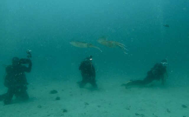ビーチでは透明度が上がったおかげでアオリイカの産卵がきれいに観察できるようになりました。