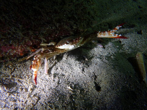 ナイトダイビングでは、昼間は隠れているエビやカニなどの甲殻類、寝ている魚、夜光虫を見たりしました(*^-^*)