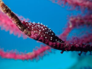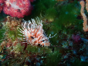 砂地にある3つのテトラには、キリンミノカサゴの幼魚やシュスヅツミ、さらに小指の爪サイズのセスジミノウミウシまで!