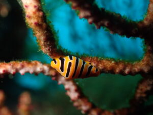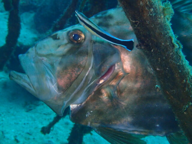 やぐらにはホンソメワケベラにクリーニングをしてもらっているマトウダイがいました。