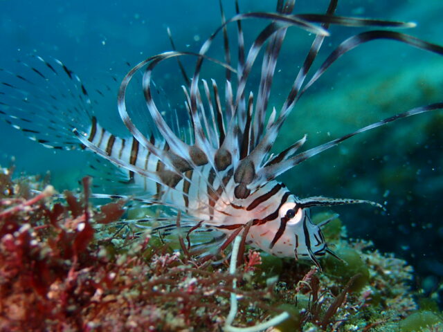 お客様がハナミノカサゴの幼魚を発見。ナイスです👏