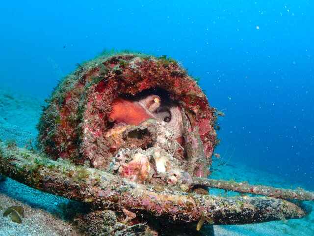 帰り道、タコツボのタコを見に砂地を泳いでいると…
