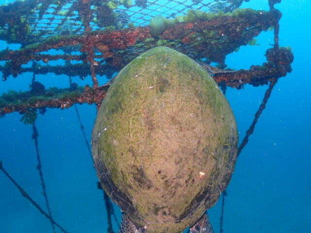 なんとウミガメがぶら下がって休憩中🐢