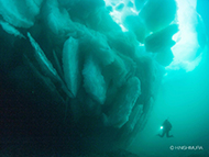 青白く輝く氷のカーテン、太陽の光が作り出す幻想的な光景、そして“流氷の天使”クリオネとの出会い。限られた季節・限られた場所でしか体験できない、感動のダイビングです。