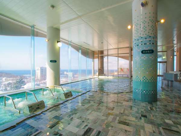 温泉は「ウトロ温泉」源泉のナトリウム–塩化物・炭酸水素塩泉。湯冷めしにくく、肌を優しく包む“美人の湯”としても知られています。大浴場・露天風呂からは海を見渡しながらゆったりと…。