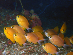 潮流の恩恵を受けるため、各種のコーラル群やカイメンが見事に群生。