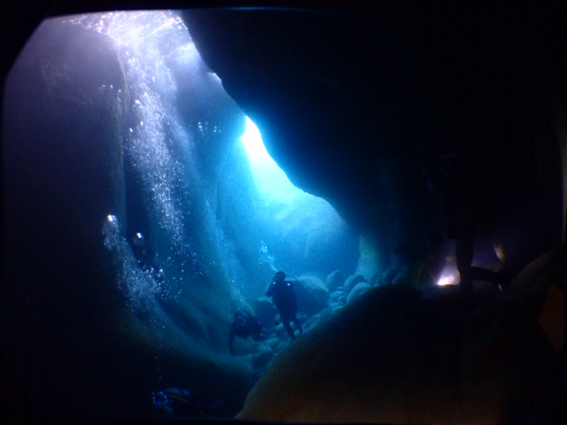 ダイナミックな地形に水中洞窟。さらに濃い魚影もありとパーフェクトなポイントです。