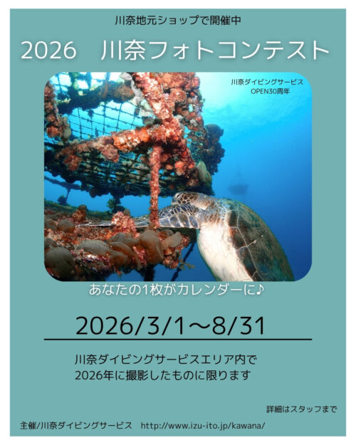 川奈ダイビングサービスエリア内で2026年に撮影したものに限ります。写真はお一人一点まで!